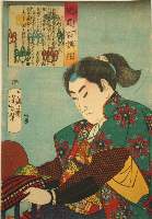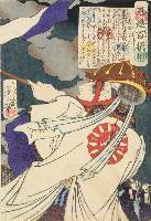 776KB | #15 | 10/1868 | 大塔 宮 | Ōtō no Miya (Morinaga Shinno), son of Emperor Go-Daigo, lifting a sedge hat over his head | |