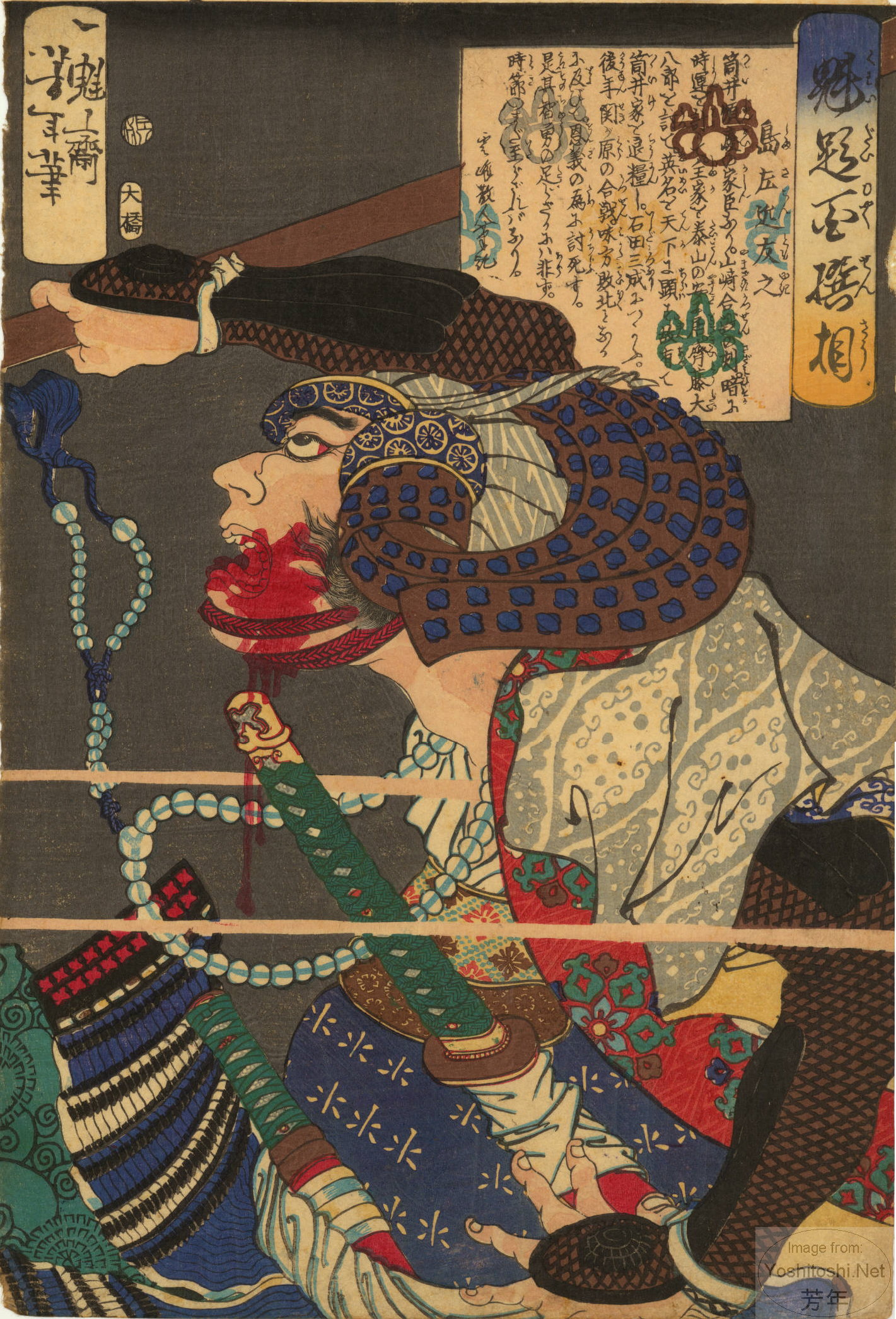 #60 | 3/1869 | 岩間 小熊 | Iwama Kokuma with painting of bloody head on jacket. | ||