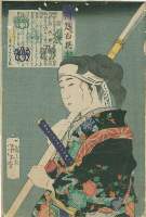 230KB | #38 | 1868 | 小寺 相模 | Odera Sagami holding sword with impaled head. | |